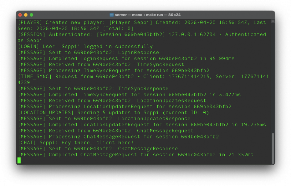 Generated Summary: NullZustand is a self-directed multiplayer game prototype built to develop practical experience across Unity, backend engineering, and real-time networking. It combines a Unity client with a custom C# server, secure TLS communication, account and session handling, real-time movement sync, chat, profile data, and a lightweight progression system in one end-to-end project.